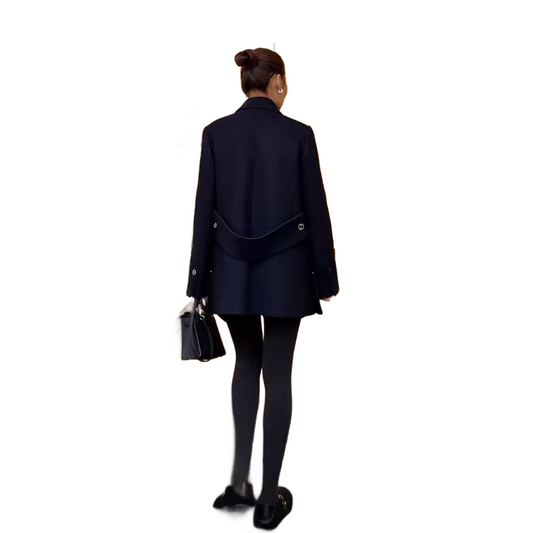 Women’s Minimalist Black Long Coat Classic Design Outerwear