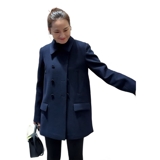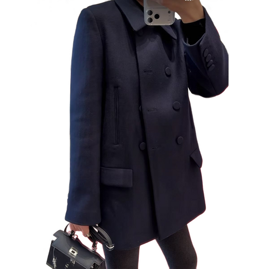 Women’s Short Wool Coat Winter Double Breasted with Classic Lapel