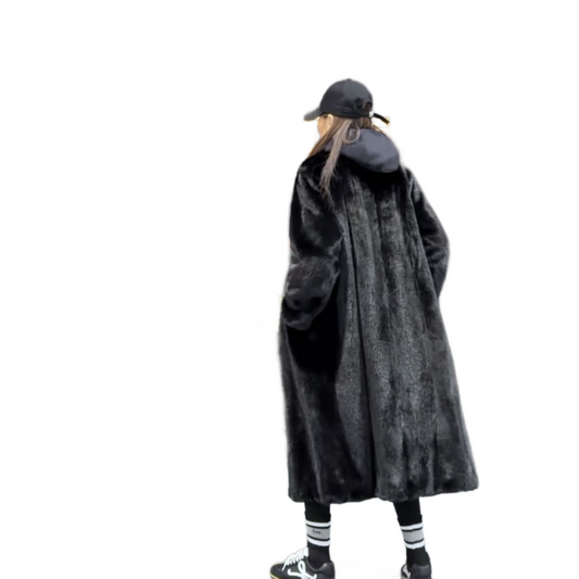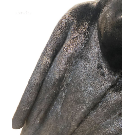 Women’s Black Full-Length Mink Coat with Stand Collar Fur Coat