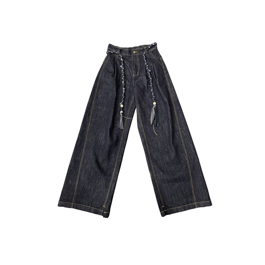 Women’s Straight Leg Pants with Color Woven Belt Long Trousers